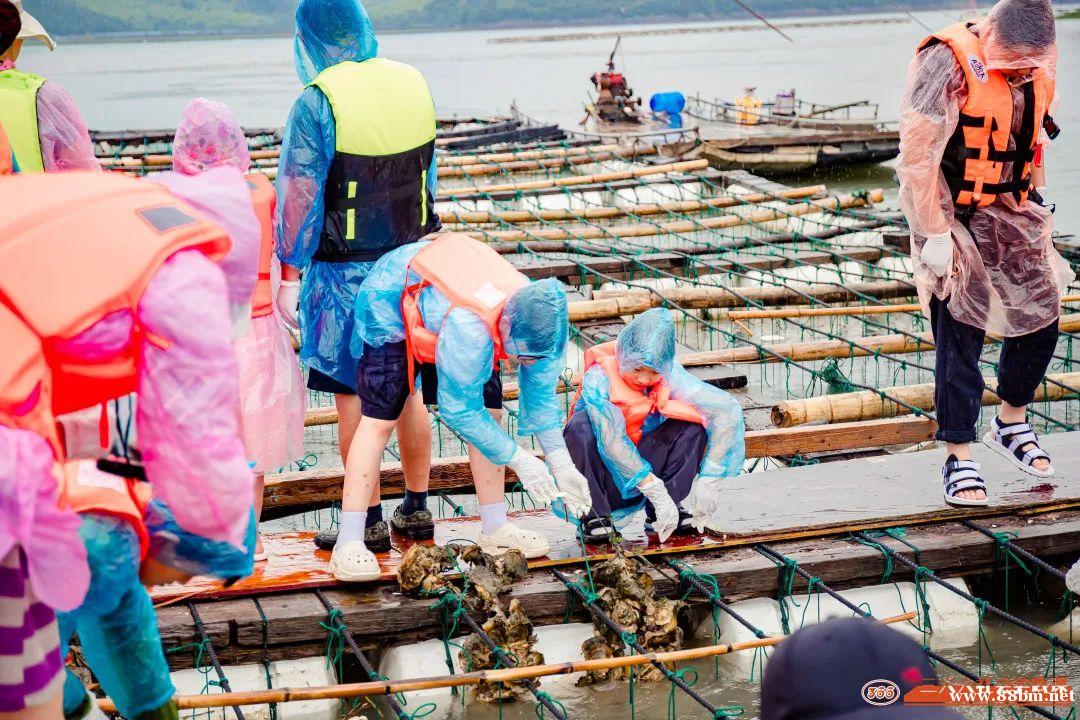 只见大家穿上救生衣,戴上手套,站在棋盘格似的岸边,拉出了大量生蚝,孩子们也兴奋不已。